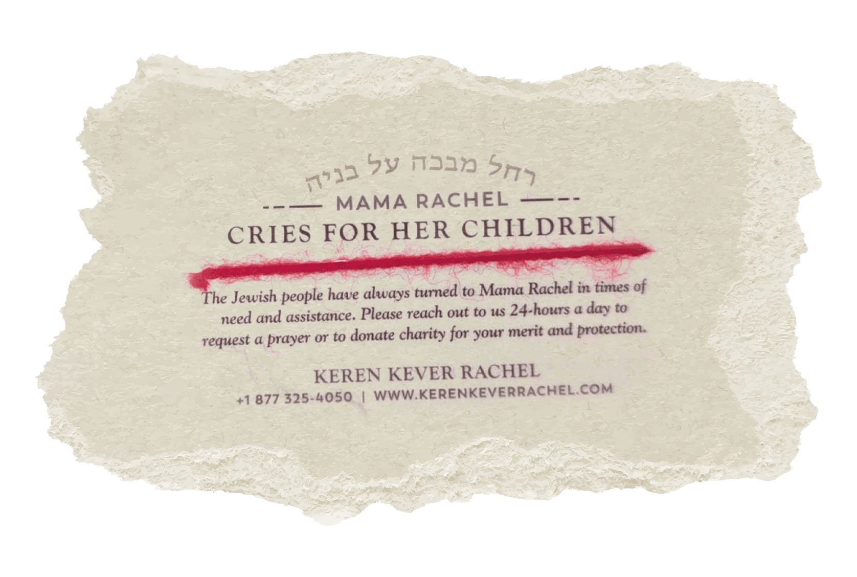 Saying this heartfelt tefillah in your home draws Mama Rachel's blessing into your family’s daily life: A shield of rachamim and protection standing beside your shabbos candles and every moment of need.